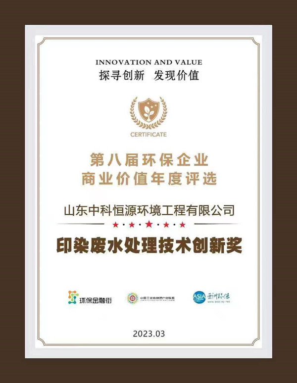 星空(中国)获得由环保金融街、中国工业水处理产业联盟、亚洲环保媒体平台联合颁发的“印染废水处理技术创新奖”